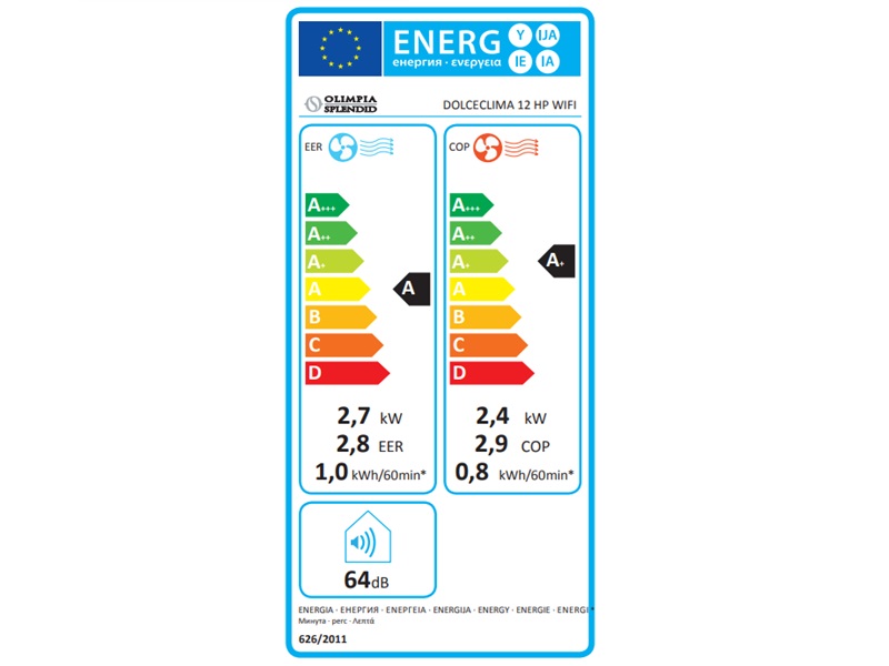 EER: 2,8, COP: 2,9