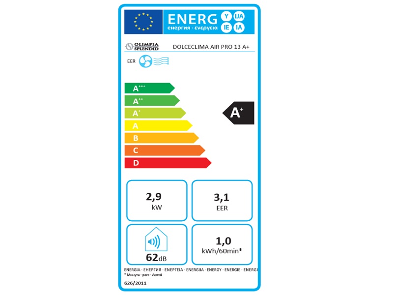 Ενεργειακή κλάση A+ και μειωμένη κατανάλωση έως 15% (EN14511)