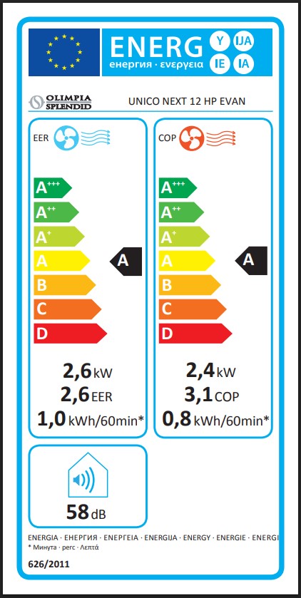 EER: 2,6, COP: 3,1