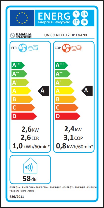 EER: 2,6, COP: 3,1