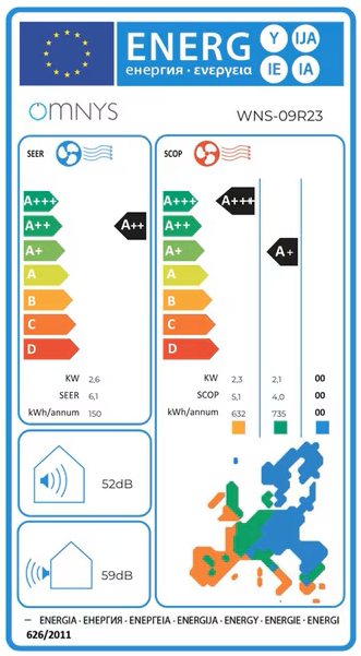 R23 OMNYS WNS-09R23 Κλιματιστικό Inverter 9.000 BTU/h με WiFi, A++/Α+++