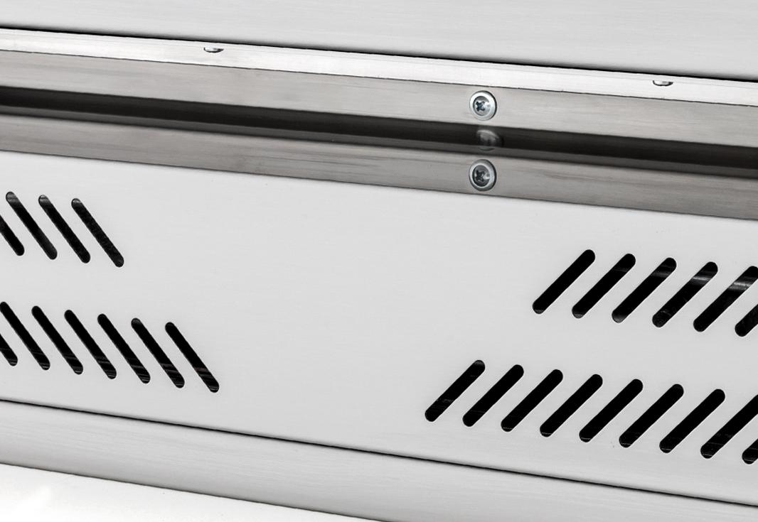 Διαθέτει κρύσταλλο, λάμπες αλογόνου, ταψιά G/N 1/1, συρτάρι νερού για παραγωγή θεμοκρασίας και μοτέρ για κυκλοφορία ζεστού αέρα και υγρασίας στο θάλαμο