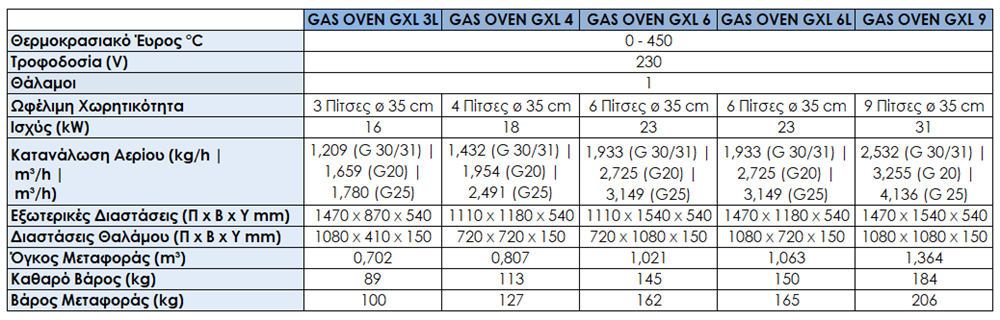GAS OVENS PRISMAFOOD GAS XL OVEN Μονός Φούρνος για Pizza Αερίου με Γυάλινη Πόρτα