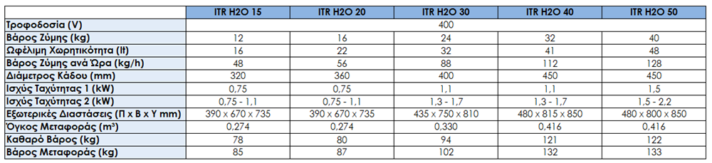 Μοντέλο:ITR H2O 15 2V ITR H2O 20 2V ITR H2O 30 2V ITR H2O 40 2V ITR H2O 50 2V