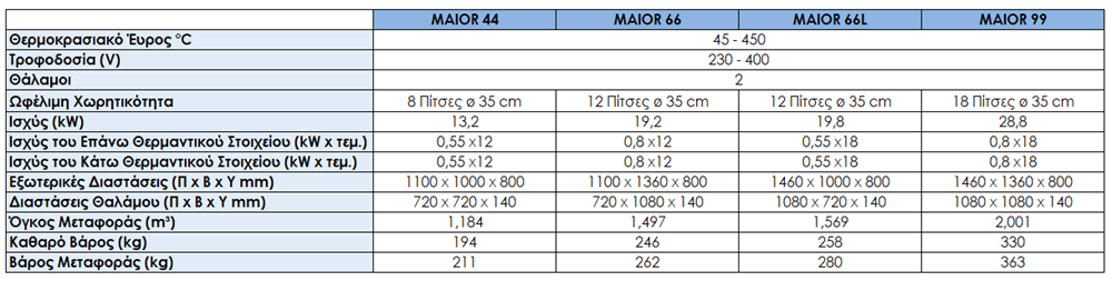 MAIOR Series PRISMAFOOD MAIOR Διπλός Ηλεκτρικός Φούρνος για Pizza με Γυάλινη Πόρτα