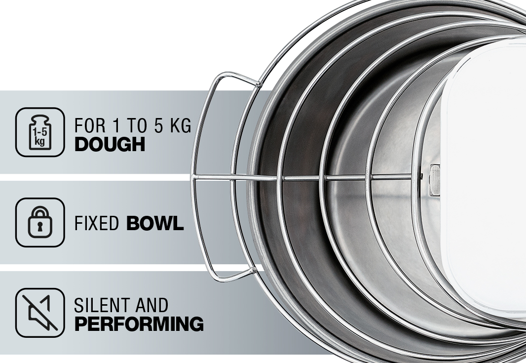 • Κατασκευασμένα από ανοξείδωτο ατσάλι: Το μπολ, η σπείρα, η κεντρική στήλη και το πλέγμα προστασίας είναι όλα από ανοξείδωτο ατσάλι