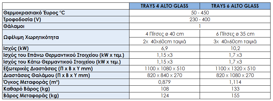 TRAYS Series PRISMAFOOD TRAYS ALTO GLASS Μονός Ηλεκτρικός Φούρνος για Pizza με Γυάλινη Πόρτα