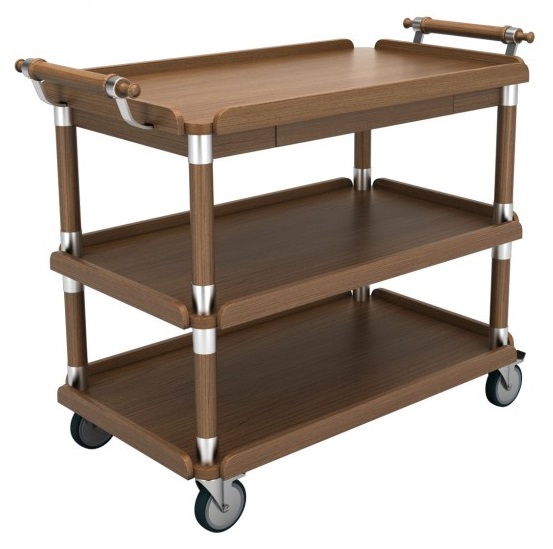 RNT 3500 RM410 Ξύλινο Service Trolley με 3 Ράφια και 1 Συρόμενη Επιφάνεια, σε Χρώμα Ευρωπαϊκής Καρυδιάς