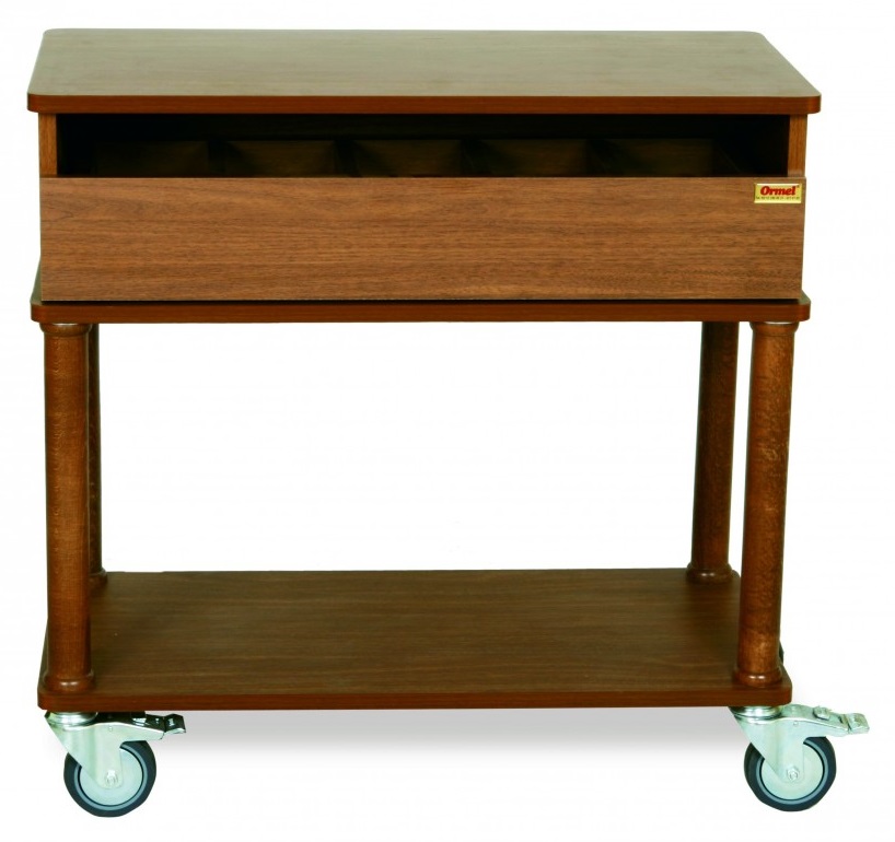 RNT 3506 RM621 Ξύλινο Tρόλεϊ Gueridon με 2 Ράφια και 2 Συρτάρια, σε Χρώμα Ευρωπαϊκής Καρυδιάς