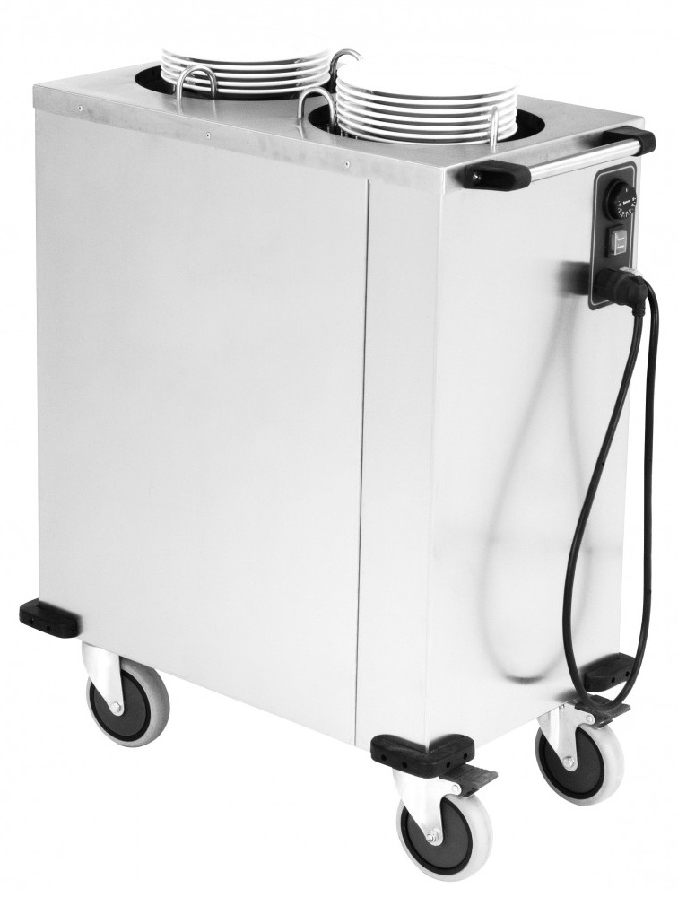 Ανοξείδωτο τροχήλατο dispenser πιάτων για μεταφορά, αποθήκευση πιάτων και για σερβίρισμα στο σωστό ύψος εργασίας. Χρήση σε κρύο ή ζεστό μπουφέ, σε συστήματα self service καθώς και γραμμές προετοιμασίας φαγητού. Τα πιάτα ανεβαίνουν στο ύψος με τη χρήση ελατηρίων.