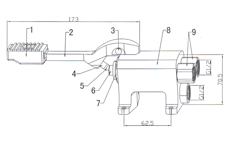 • παρέχει ανάμεικτο νερό (έξοδος 1/2"), όσο πιο πολύ πάτημα - τόσο πιο ζεστό το νερό