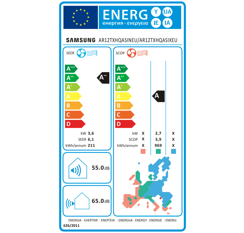 SEER: 6,1 W/W, SCOP: 3,9 W/W
