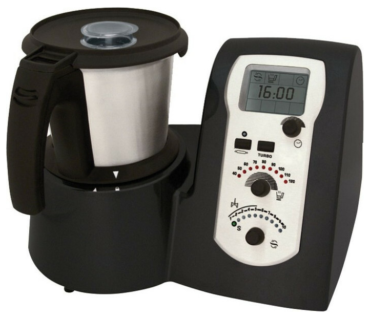 MINICOOKER - MYCOOK semi-professional thermal blender ? Practical, must-have kitchen aid ? Powerful motor separated from the cooking zone ? Induction heating which halves. the time required to reach desired temperature ? Minicooker supplied with 5 kg scales with tare ? Speed changer ? Potentiometer for cooking to 120° ? Practical 2 lt stainless steel bowl ? Knife hub quick to dismantle for easy cleaning ? Lid with safety closure ? Spatula, butterfly mixer and perforated basket supplied ? Add ingredients cap with measuring device ? Saut?ed vegetable program Optionals: ? Steam cooking set for Minicooker