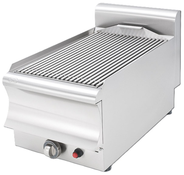 Το γκριλ νερού είναι το μοναδικό που ψήνει τις τροφές χωρίς να τις στεγνώνει. Απλά προσθέτετε νερό μέχρι τη μέση του ταψιού που βρίσκετε κάτω από τους καυστήρες. Αυτό με τη θέρμανση ατμοποιείται και οδηγείται επάνω στα ψητά διατηρώντας τα τρυφερά. Το ίδιο ταψί λειτουργεί και ως λιποσυλλέκτης.