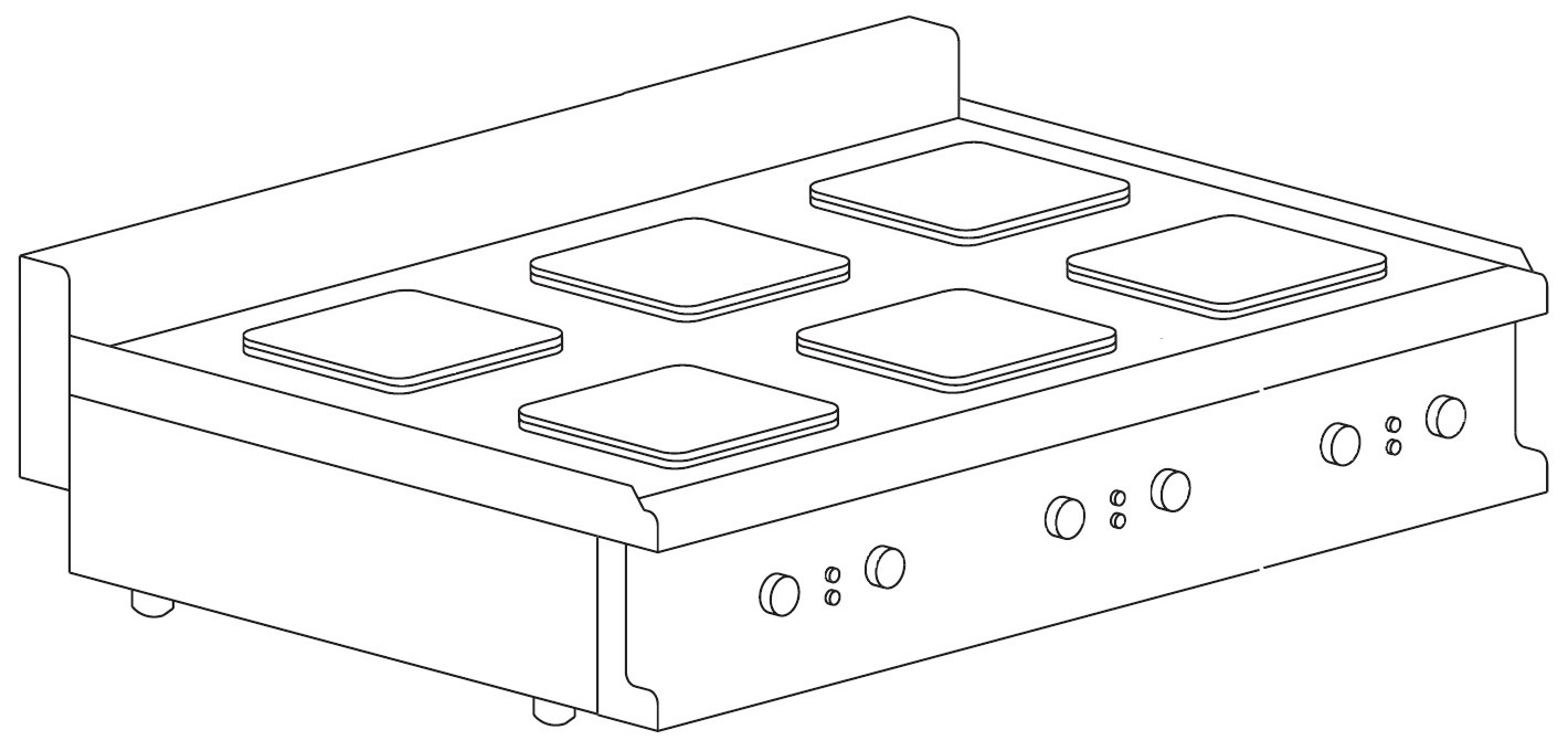 Εστίες: 6 τεμ 300x300 mm, 3 kW