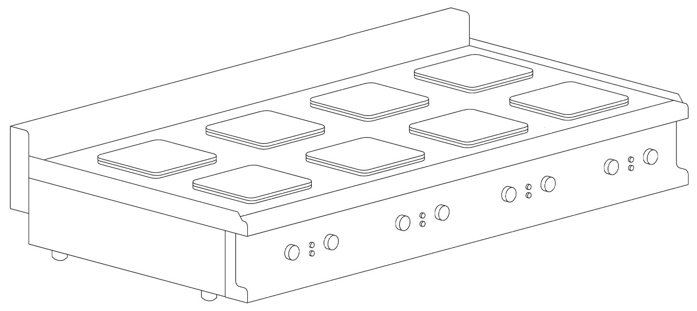 Οι κουζίνες της σειράς `70 διατείθενται με εστίες 22x22cm (2600W) κάθε εστία ή κατόπιν παραγγελίας με στρογγυλές εστίες Φ22cm (2600W) κάθε εστία.