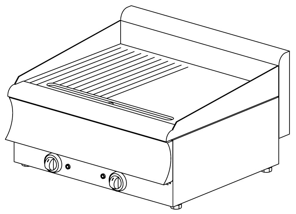 Ηλεκτρικό Πλατώ Ενός Στοιχείου με 2/3 Λεία και 1/3 Ραβδωτή Επικλινή Επιφάνεια Χρωμίου και Θερμοστατικό Έλεγχο